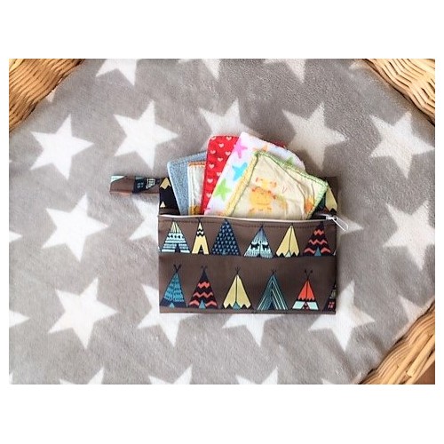 Pochette lingette : imperméable, pour lingettes lavables ou jetables. Très pratique si vous voulez pré-imbiber vos lingettes lavables de liniment ou d'une autre solution pour qu'elles soient prêtes à l'emploi. Pour ranger sucettes, maquillage, serviettes hygiéniques.